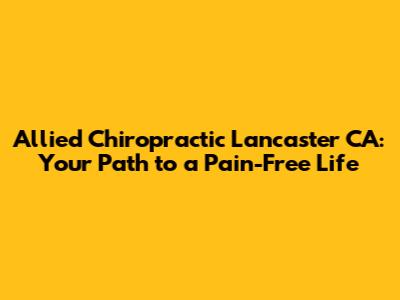 Hey everyone, let's talk about Allied Chiropractic in Lancaster, CA, and why it could be your secret weapon for a healthier, happier you! We're diving deep into what makes this place tick, from the amazing services they offer to the benefits you can expect. Whether you're wrestling with a nagging backache, a stiff neck, or just looking to boost your overall well-being, this is the place to be. Buckle up, because we're about to explore everything you need to know about getting your body back in tip-top shape!