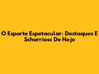 O Esporte Espetacular: Destaques E Schorriosc De Hoje