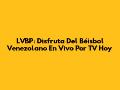 LVBP: Disfruta Del Béisbol Venezolano En Vivo Por TV Hoy