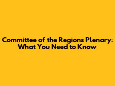 Committee Of The Regions Plenary: What You Need To Know