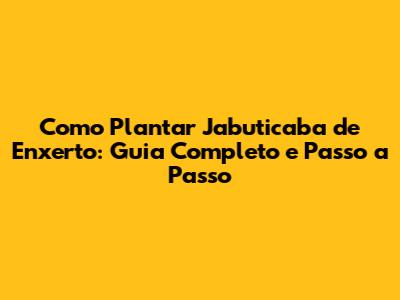 Como Plantar Jabuticaba De Enxerto: Guia Completo E Passo A Passo