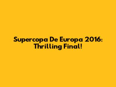 Supercopa De Europa 2016: Thrilling Final!