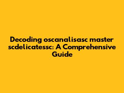 Decoding Oscanalisasc Master Scdelicatessc: A Comprehensive Guide