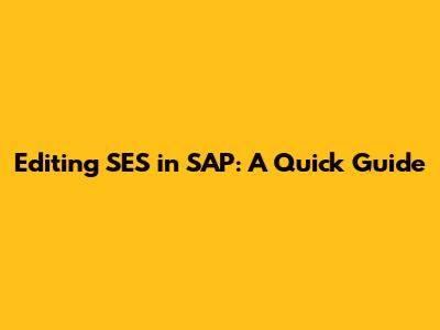 Editing SES In SAP: A Quick Guide