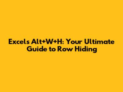 Excel's Alt+W+H: Your Guide To Mastering Row Hiding