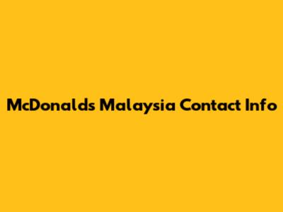McDonald's Malaysia Contact Info