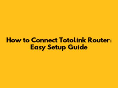 How To Connect Totolink Router: Easy Setup Guide
