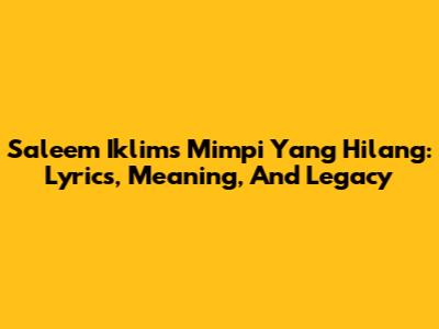 Saleem Iklim's 'Mimpi Yang Hilang': Lyrics, Meaning, And Legacy