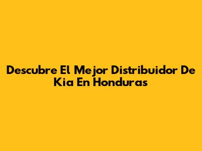 Descubre El Mejor Distribuidor De Kia En Honduras