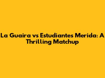 Hey guys! Get ready for a deep dive into the exciting clash between La Guaira and Estudiantes Merida! This is more than just a game; it's a battle of strategy, skill, and sheer determination. Whether you're a die-hard fan or new to the sport, understanding the nuances of this matchup can seriously amp up your viewing experience. So, let's break it down and see what makes this contest so compelling.