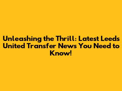 Unleashing the Thrill: Latest Leeds United Transfer News You Need to Know!
