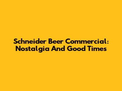 Schneider Beer Commercial: Nostalgia And Good Times
