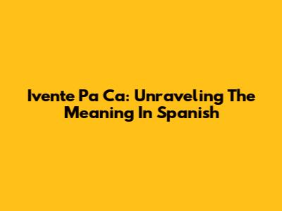 Ivente Pa' Ca: Unraveling The Meaning In Spanish