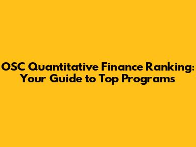 OSC Quantitative Finance Ranking: Your Guide To Top Programs