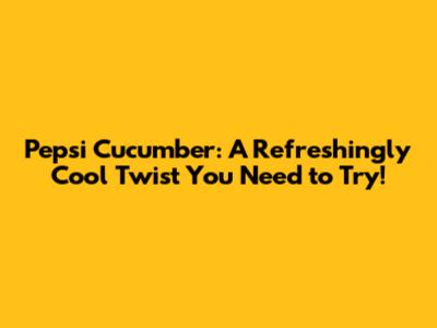 Pepsi Cucumber: A Refreshingly Cool Twist You Need To Try!