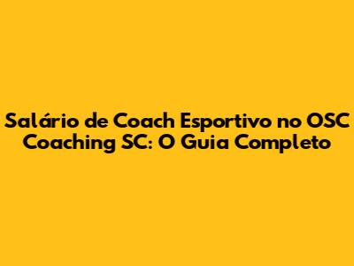 Como se Tornar um Coach Esportivo no OSC Coaching SC e Aumentar seus Ganhos
