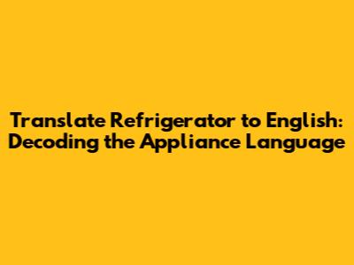 Translate Refrigerator To English: A Complete Guide