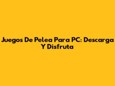 Juegos De Pelea Para PC: Descarga Y Disfruta